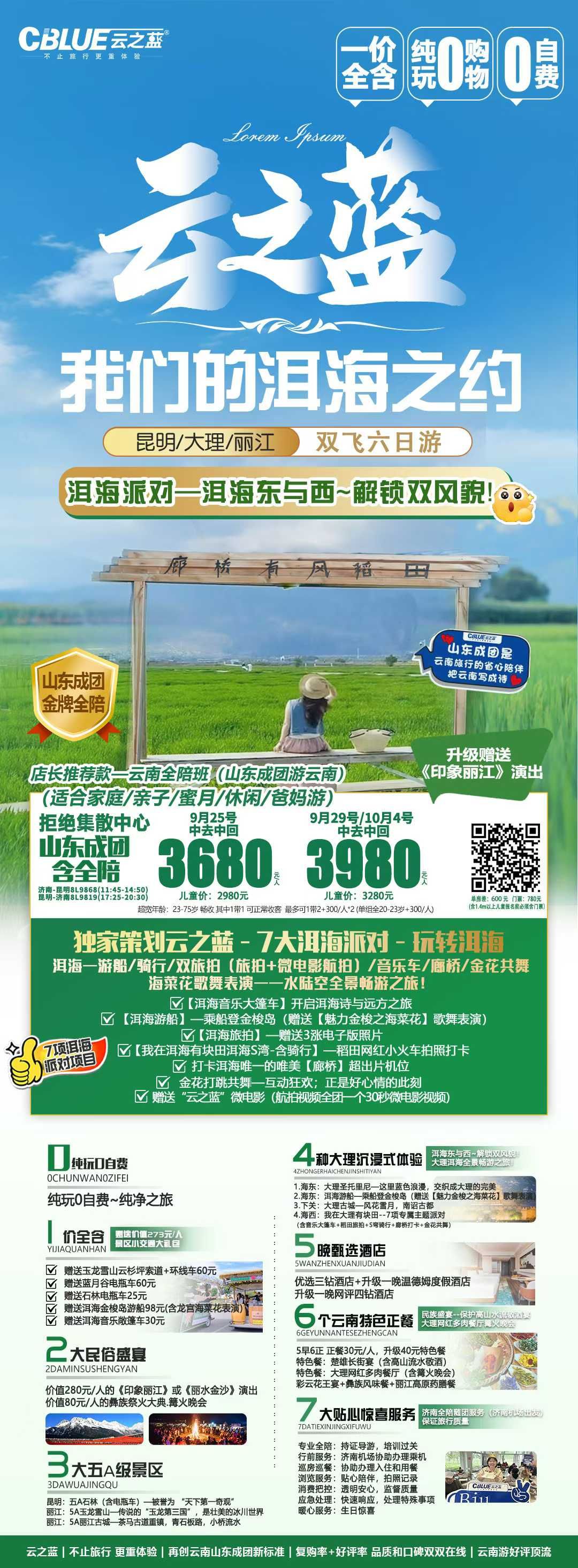 云南山东成团云之蓝双飞六日游 2025-9-20 本文被阅读 60 次