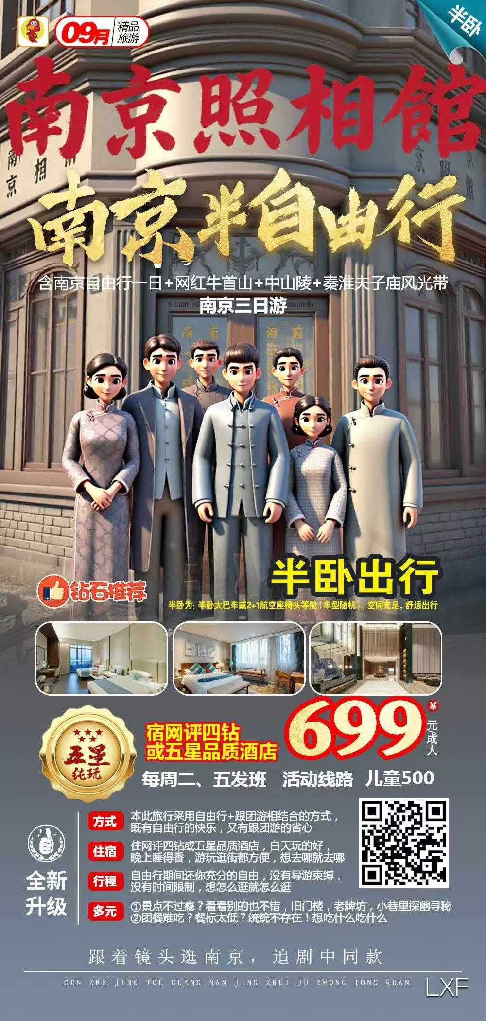 半卧-南京自由行大巴三日游 2025-9-23 本文被阅读 24 次