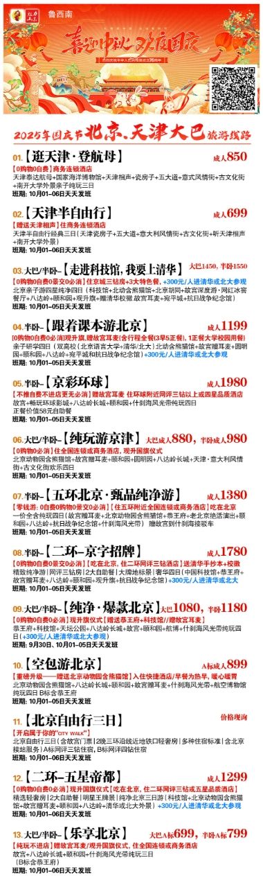 国庆节北京大巴线路集合 2025-9-27 本文被阅读 6 次