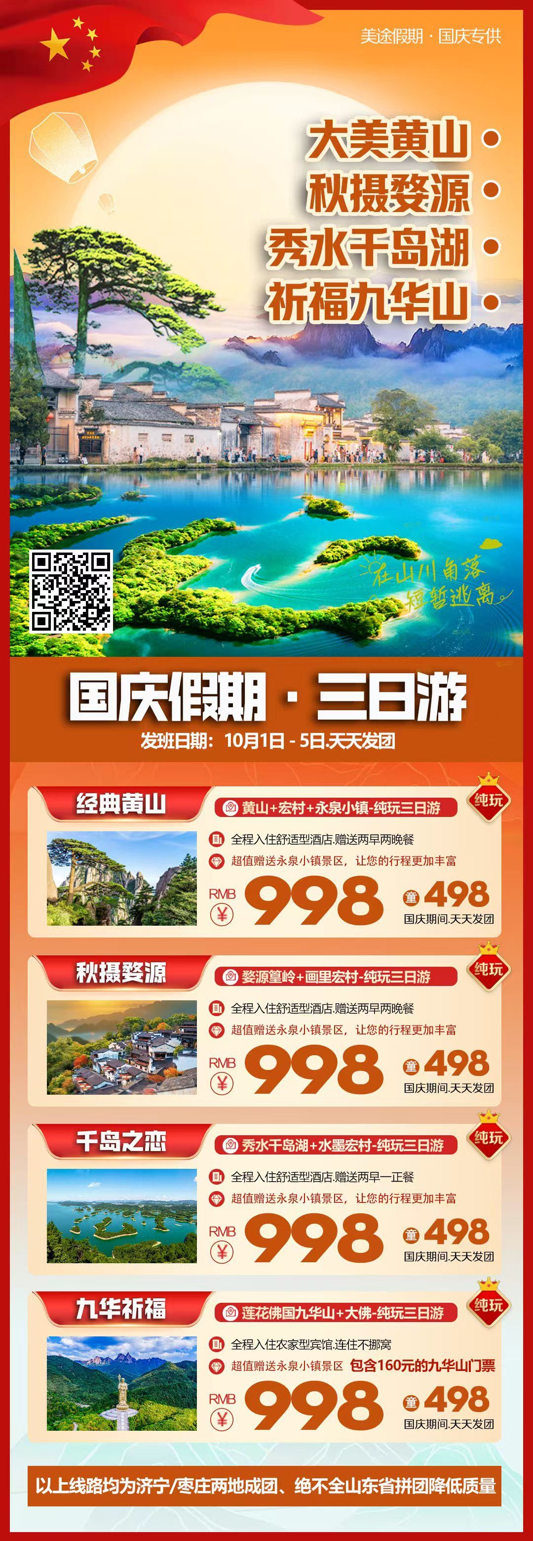 国庆节黄山/婺源/千岛湖大巴三日游 2025-9-29 本文被阅读 3 次