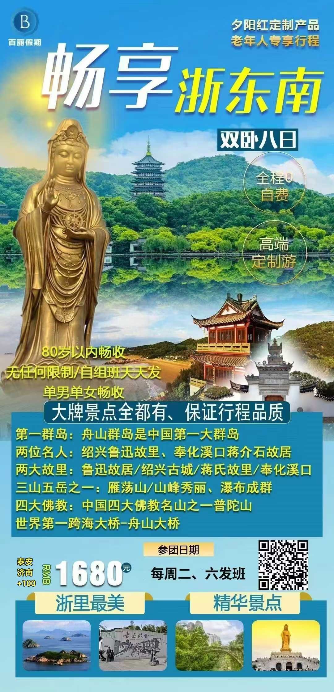畅享浙东南双卧八日游 2025-10-5 本文被阅读 4 次