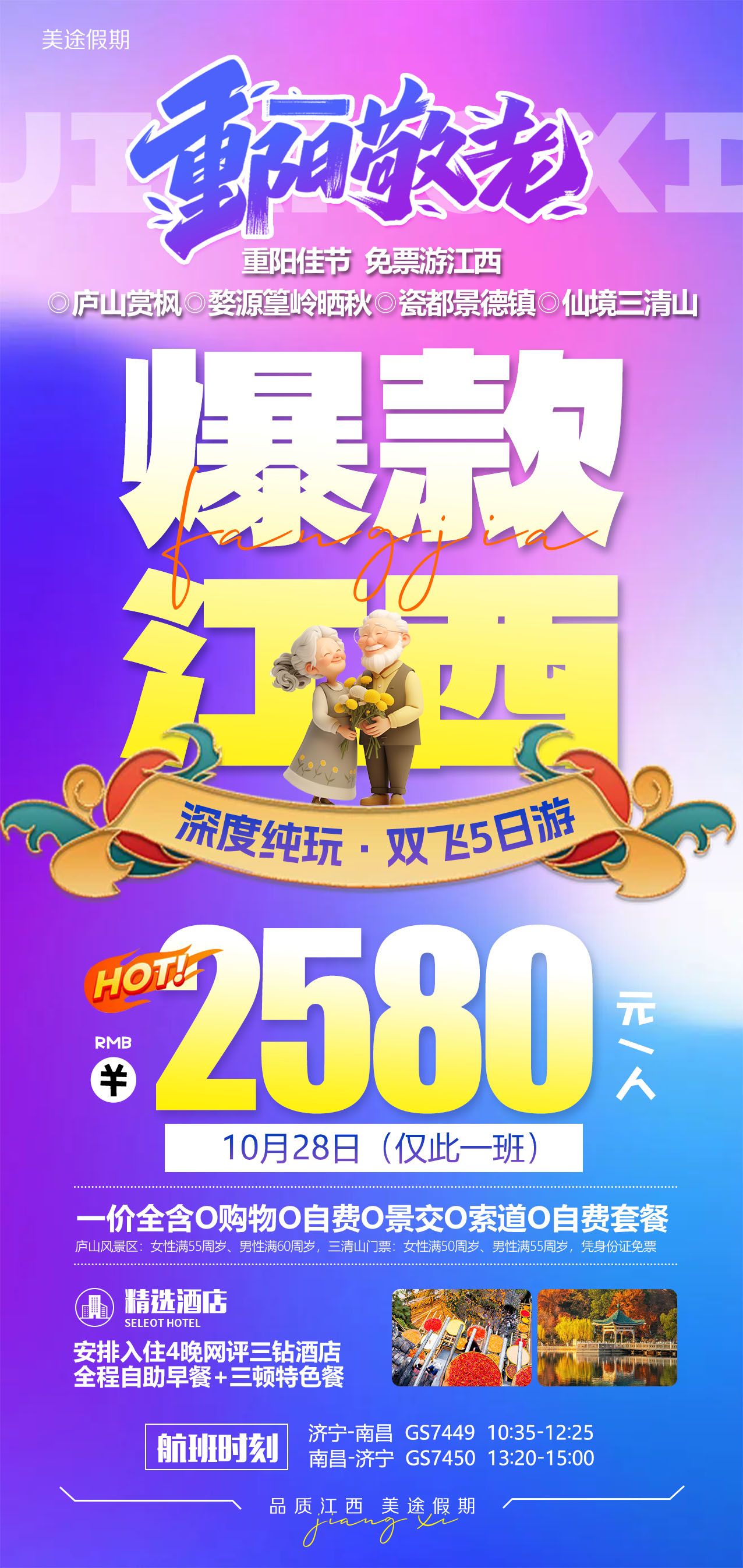 济宁直飞江西重阳节免票活动