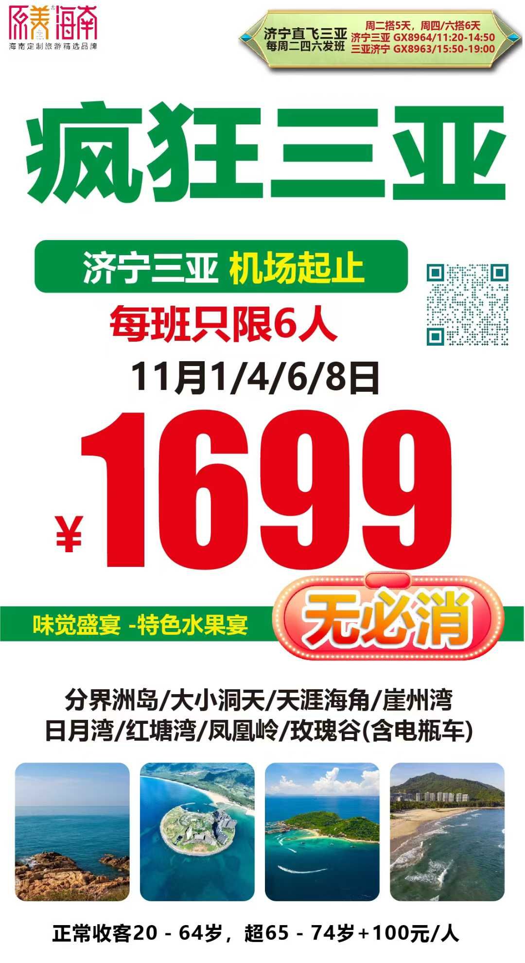济宁三亚直飞双飞五日游 2025-10-29 本文被阅读 1 次