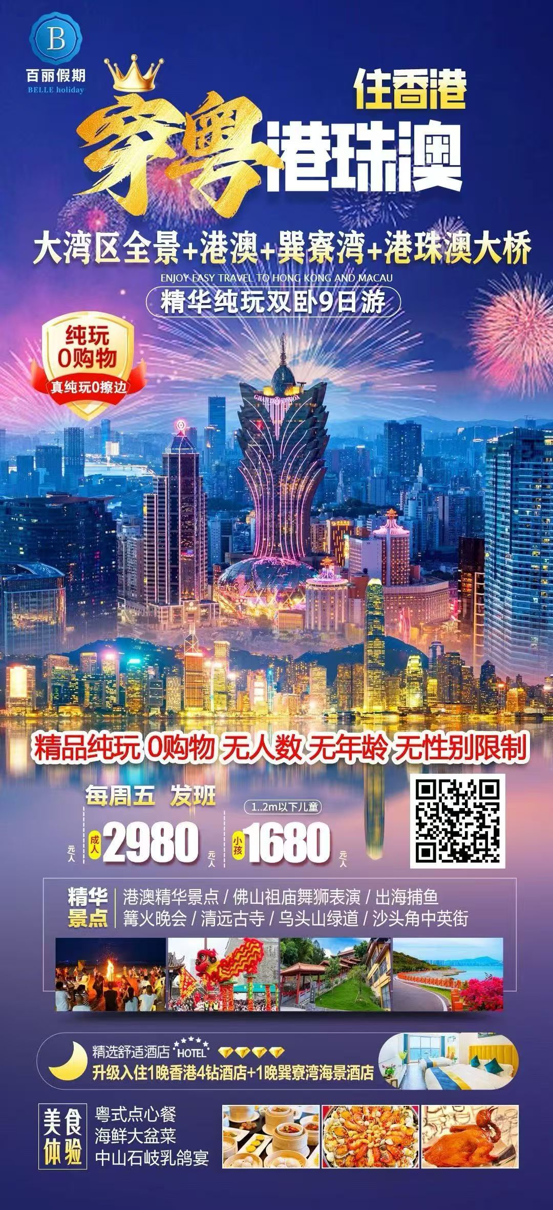 穿越港珠澳精华纯玩双卧9日游 2025-11-9 本文被阅读 6 次