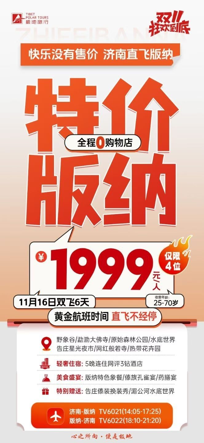 济南直飞版纳 特惠班双飞五日游 2025-11-12 本文被阅读 4 次