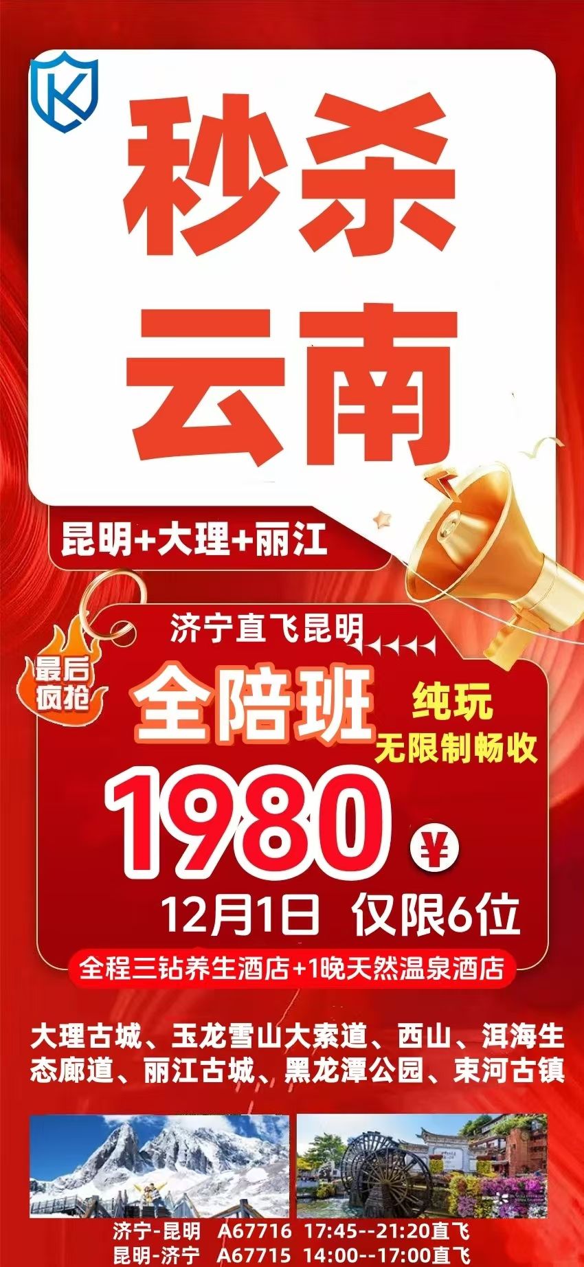 全陪班昆大丽双飞6日游 2025-11-23 本文被阅读 3 次