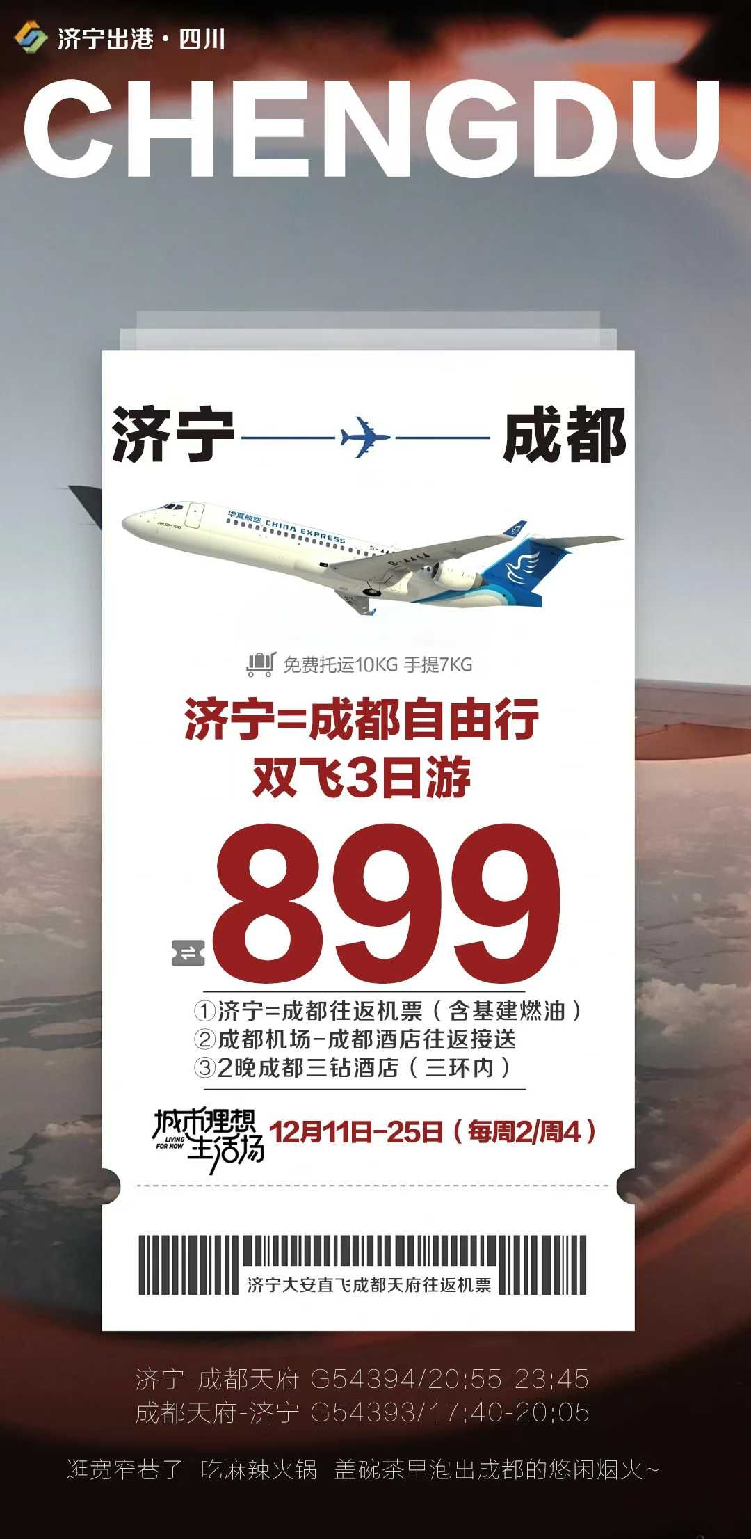 899济宁成都自由行双飞三日游 2025-12-10 本文被阅读 3 次