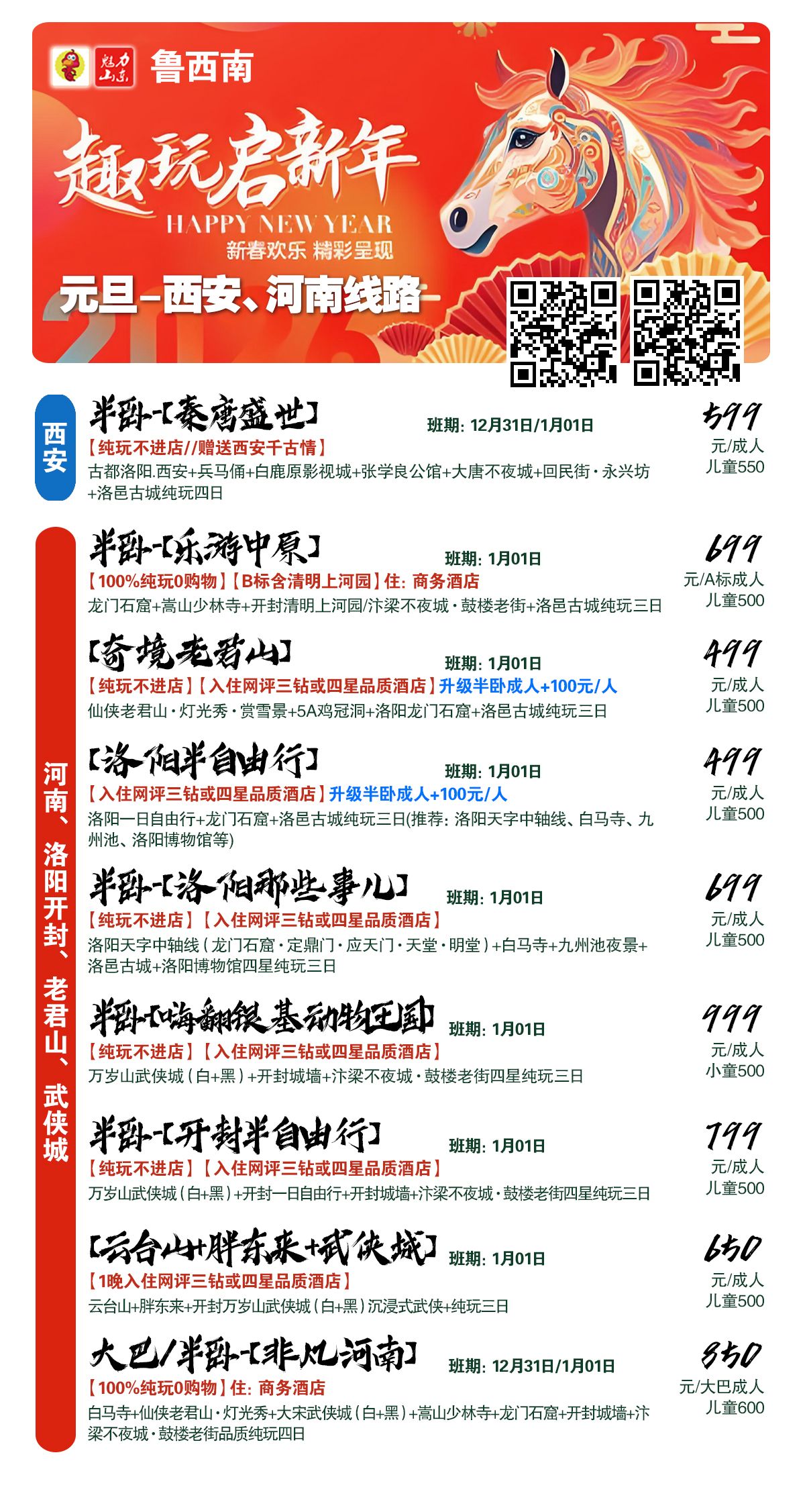 元旦-西安、河南线路 2025-12-12 本文被阅读 3 次