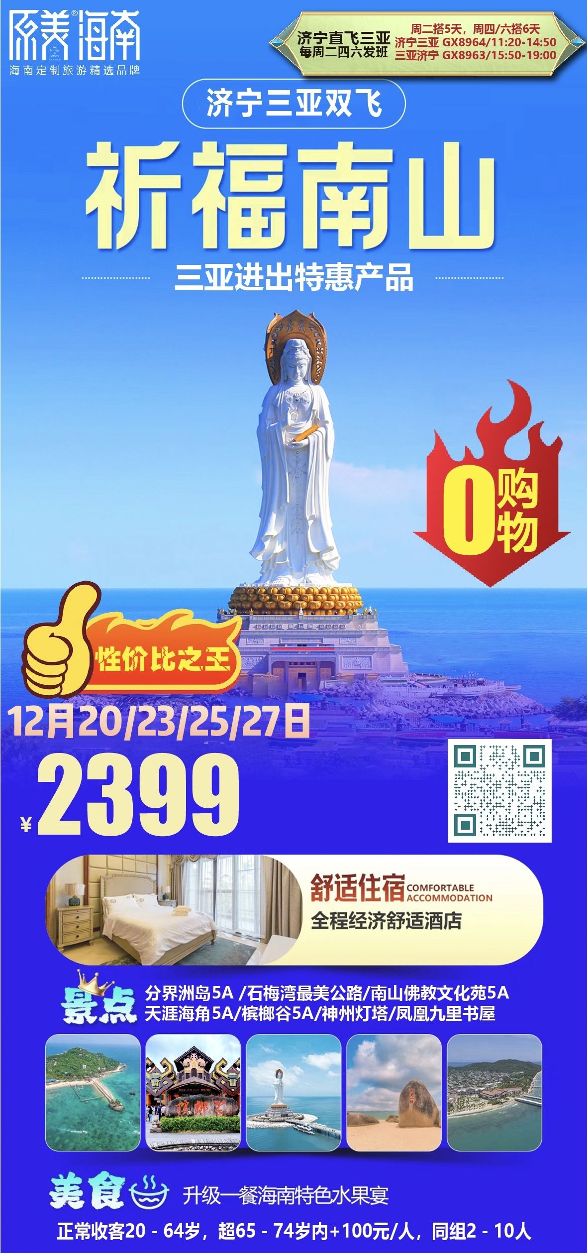 三亚祈福南山双飞6日游 2025-12-16 本文被阅读 155 次