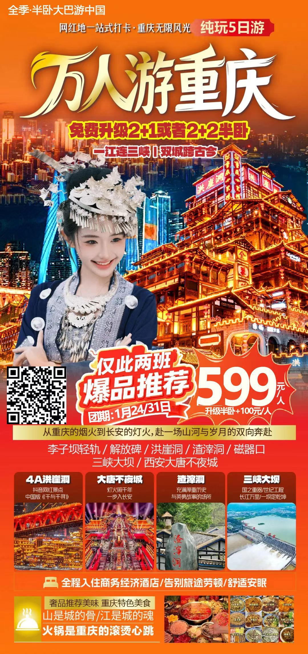 万人游重庆半卧纯玩5日游 2026-1-19 本文被阅读 1 次