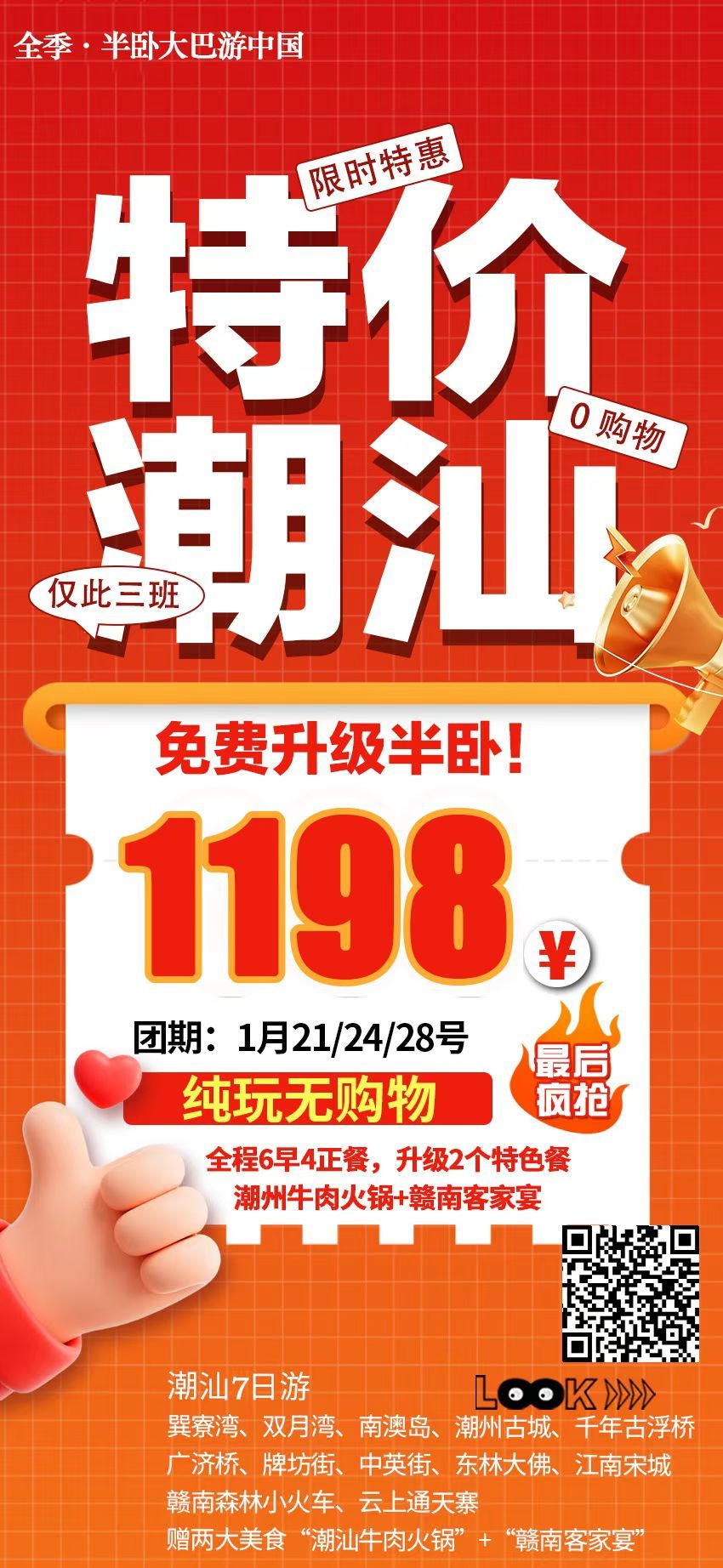 特价潮汕纯玩半卧7日游 2026-1-19 本文被阅读 1 次