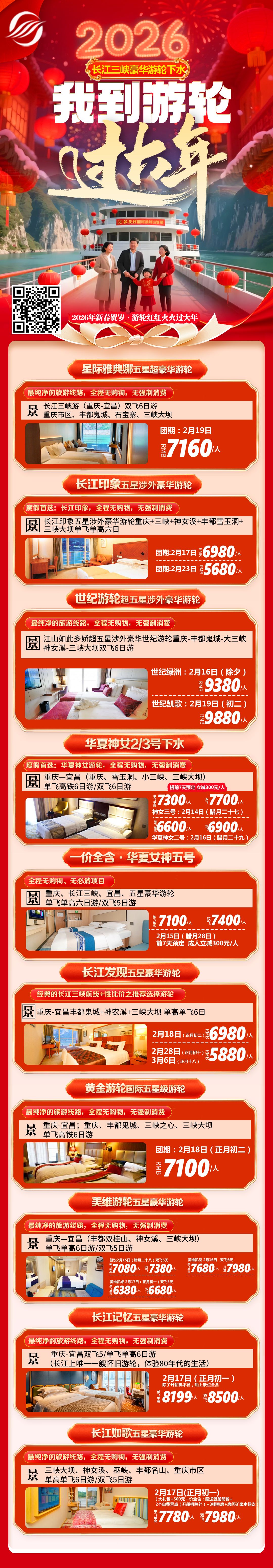 春节三峡游轮线路集合 2026-1-22 本文被阅读 5 次