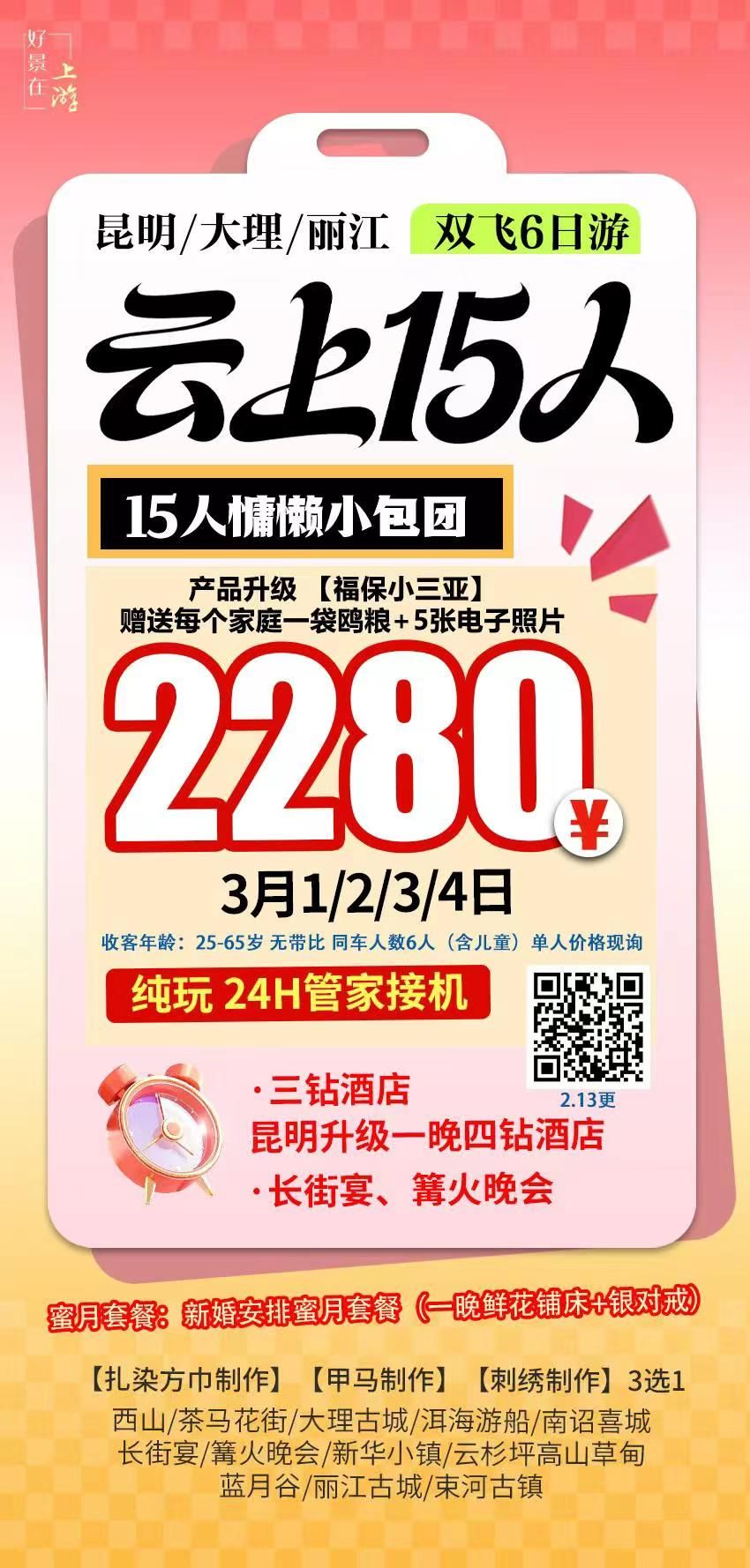 云南慵懒小包火爆双飞六日游 2026-2-25 本文被阅读 1 次