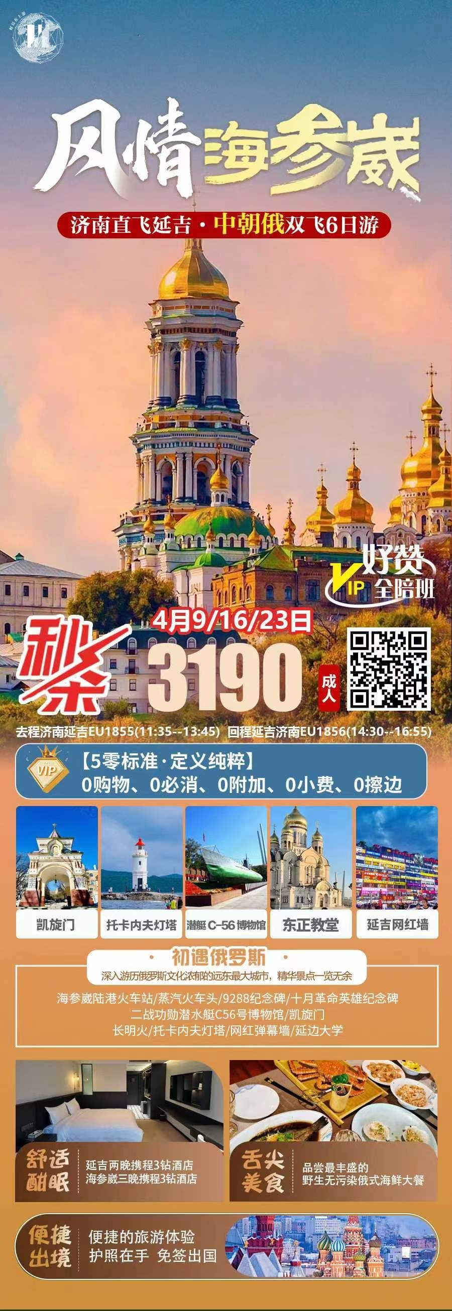 风情海参崴 济南直飞延吉6日游 2026-3-25 本文被阅读 19 次
