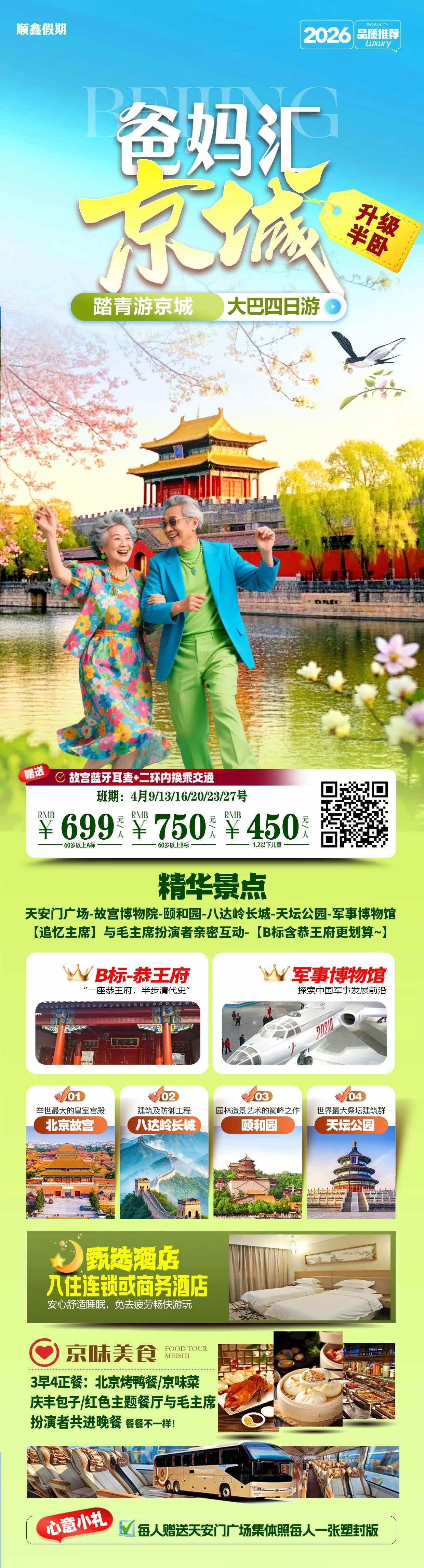 爸妈汇京城半卧大巴四日游 2026-4-11 本文被阅读 1 次